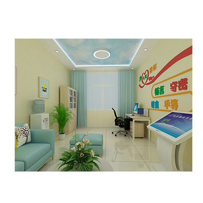 接待室的建設,建議以奶黃色為主色調或者根據教師的喜好選擇,因為接待室是心理咨詢師的主要辦公地。但是要具有嚴肅和溫馨的感覺,因為此室也是來訪者進行心理咨詢的第一站,要讓來訪者感覺親近平等,自然,不要具有壓迫感。同時需要配置一個小的開放式的小書架,來訪者在等待的同時可以翻閱書